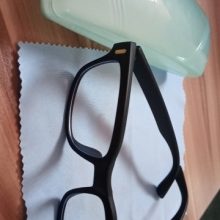 Glasses are plastic, there are no scratches, came in a soft package. Let's see if the eyes will get tired from the PC or not.
