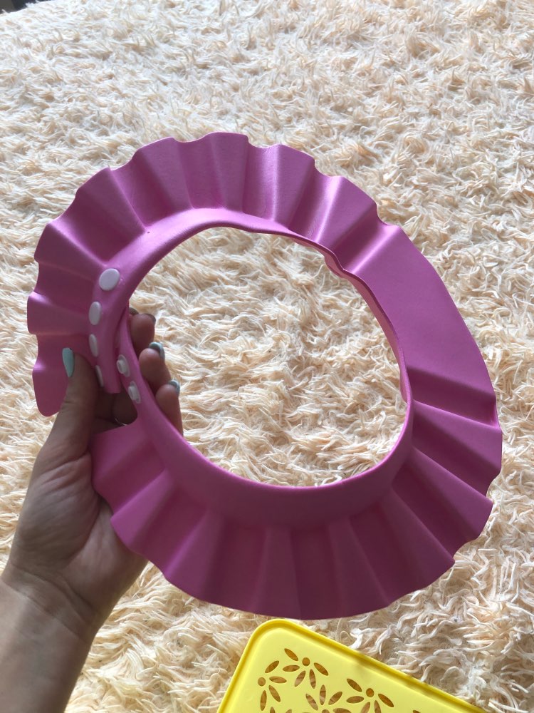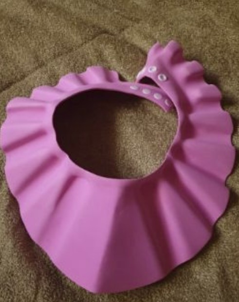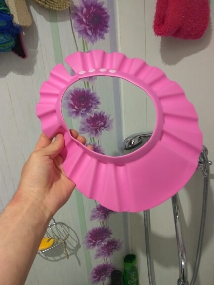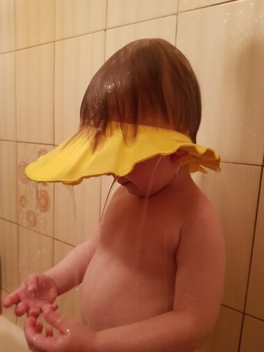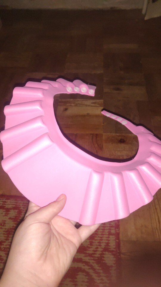 Excellent cap for keeping water off child’s face. I bought these for our 4 year old who kept screaming in the bath or shower when we’d wash her hair and water got on her face. I had low expectations of this product as it’s just a flimsy piece of foam. BUT it absolutely WORKS!!! My daughter is pleased and doesn’t scream any more. I snap it on the second to the last button and voila it’s magical. It looks silly but works perfectly. I definitely recommend this product to any parent with a child that struggles with water on their face while washing in the tub or shower.