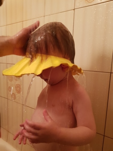 We enjoy using the baby shower cap and feel that it does a great job of keeping water away from face. Only negative is that it tends to slide down from time to time.