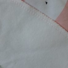 The front of our bib is made from 100% organic, long-staple cotton for ultra-plushness and zero skin irritation. The back (interior) features smooth, polyester fleece that is scratch-free.