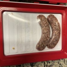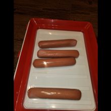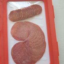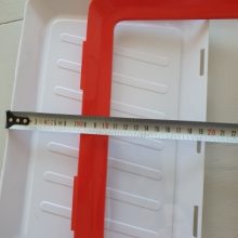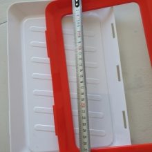 Our trays are made of polypropylene plastic, with the wrap being advanced elastic film. All trays are white with a red border frame for the film cover. Each tray measures 9 x 12 x 1.14 inches (L x W x H).