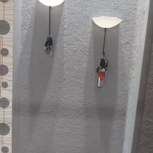 These stick well to the wall and have held up well for me. I use them as necklace holders instead of a key hanger. Fun way to display your jewelry.