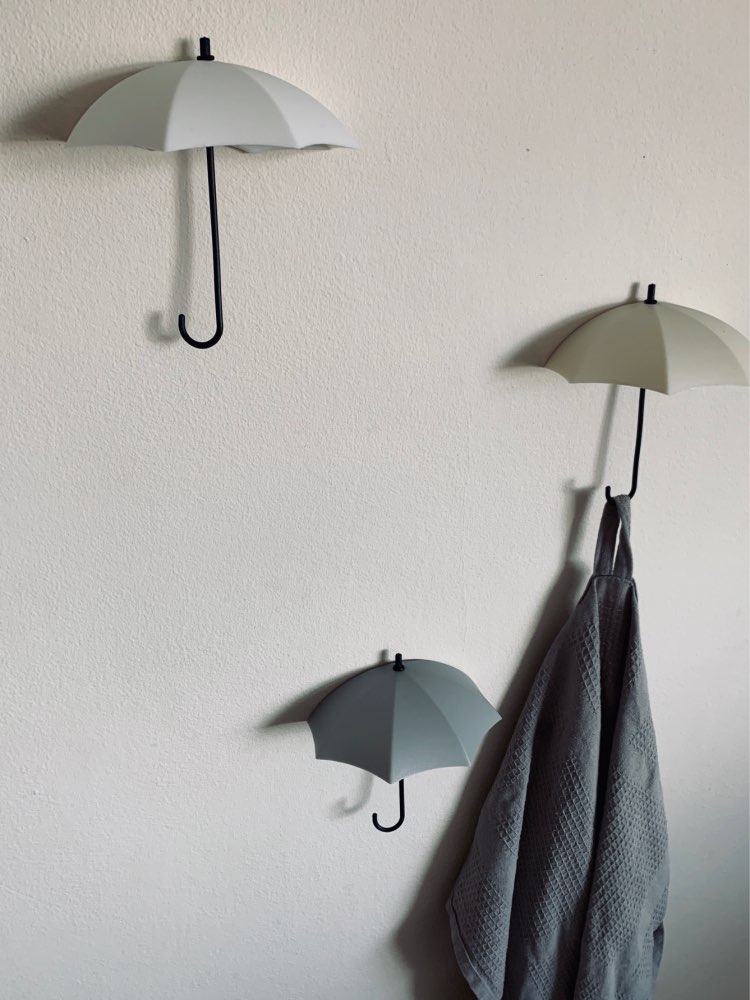Like opening an umbrella on a wet day, our hooks get to work in the blink of an eye. Each hook comes with double-sided adhesive tape, so all you have to do is remove the protective film and adhere the hook to the wall. Need to shift gears or change? Removing the hooks is easy without worry of removing paint or damaging your walls.