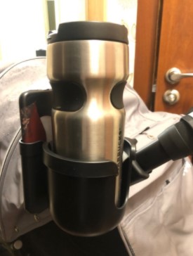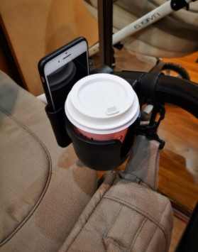 The holder fits baby bottles and larger cups, including my daughter’s 16 oz Tervis Tumblers. Time will tell how long the silicone pieces hold up. I am not a fan of the phone compartment. I just do not want to put my smartphone so near a cup of liquid. Plus, there is also a chance of a kiddo grabbing the cup and accidentally knocking the phone out. Bottom Line: If you need an extra cup holder, it is a good option to consider, but use the phone compartment at your own risk.