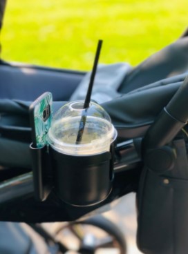 Not on baby duty? You can still bring our Cup and Phone Holder for Stroller around with you and attach it to shopping carts at grocery stores, your bike, scooter, or bicycle. It’s an incredibly versatile item for the ultimate convenience to free up your hands and pockets.![4]()