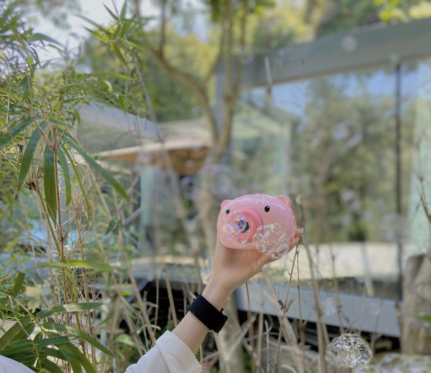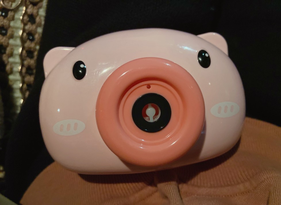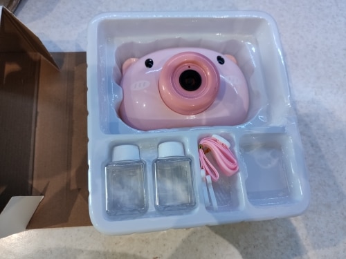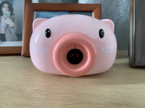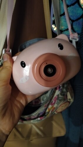 Bubble machine received as expected, the daughter especially likes the pink color, fat pig modeling design is also very cute. I'm happy with the way she's holding on. The bubble machine is also equipped with a special bubble liquid.