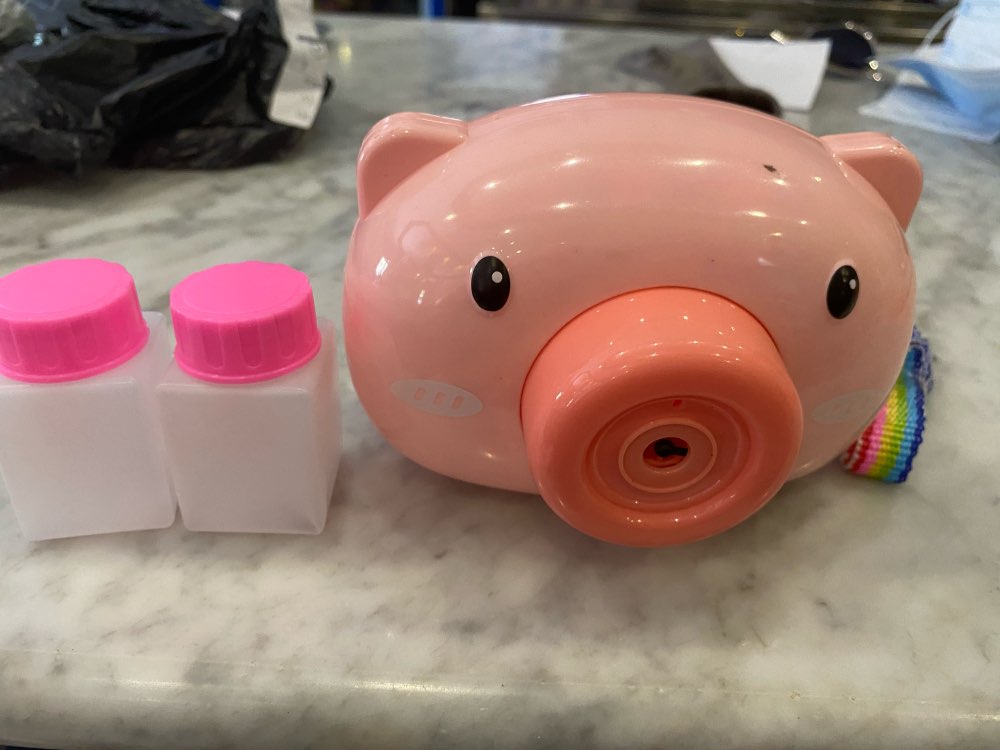 The piggy-shaped bubble machines are very cute,they produce the most beautiful bubbles,colorful ,and last for a long time.Bought this for my 2yr old son who loves playing bubbles with his cousins.Love this product.Not only for children to play,Can also be used at parties. So far there is no quality problem, no water leakage.