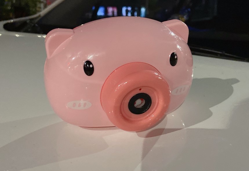 Bring a one-of-a-kind bubble-blowing pig to any party or child gathering for lighthearted fun indoors or outdoors. Our Cute Pig Bubble Maker is camera-inspired, complete with a convenient carry strap for on-the-go bubbles and joy.
