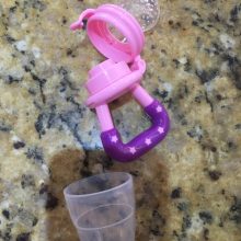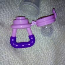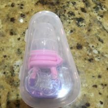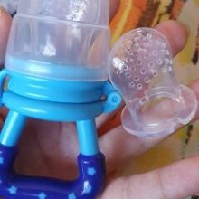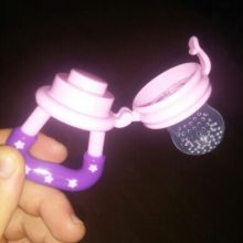 Prevent coughing and choking (or slapping away of the hand) from your little one by using this pacifier to ease your baby into tasting fruit.