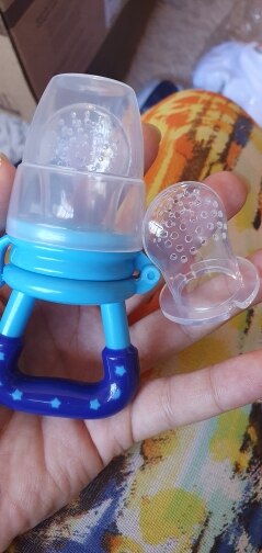 Love these! Although the large one doesn’t hold as much food as the mesh feeders they’re easier to clean and the holes are larger. I keep them in the fridge so they’re extra cold for teething. They’re super easy to clean and the nipple part detaches. My 7 month old gets excited when she sees this!