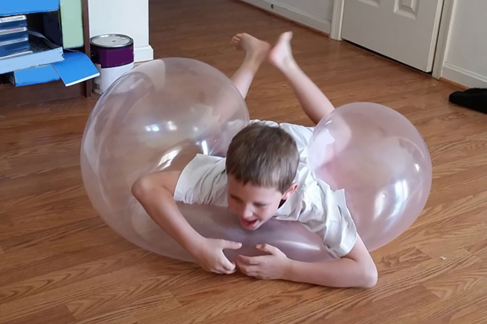 Playtime takes a punch. Or kick. Or pummeling. Discover the world’s most indestructible ball that can handle anything from indoor shenanigans to outdoor fun. Like a mysterious ball of wonder, our Indestructible Bubble Ball wobbles, rolls, floats, dribbles, and spins for quality fun time for kids of all ages (adults can join in too!)