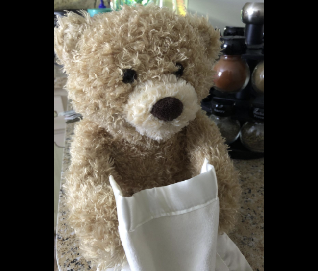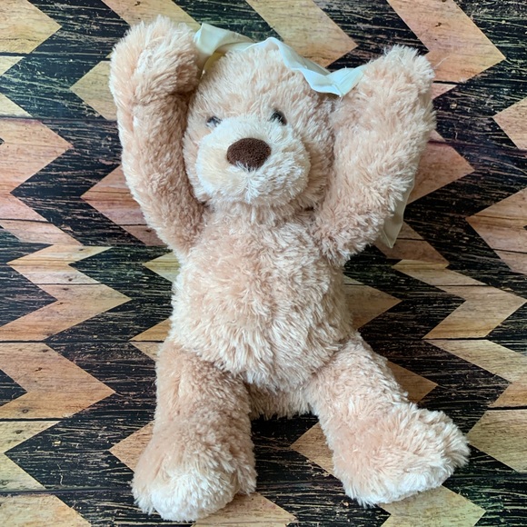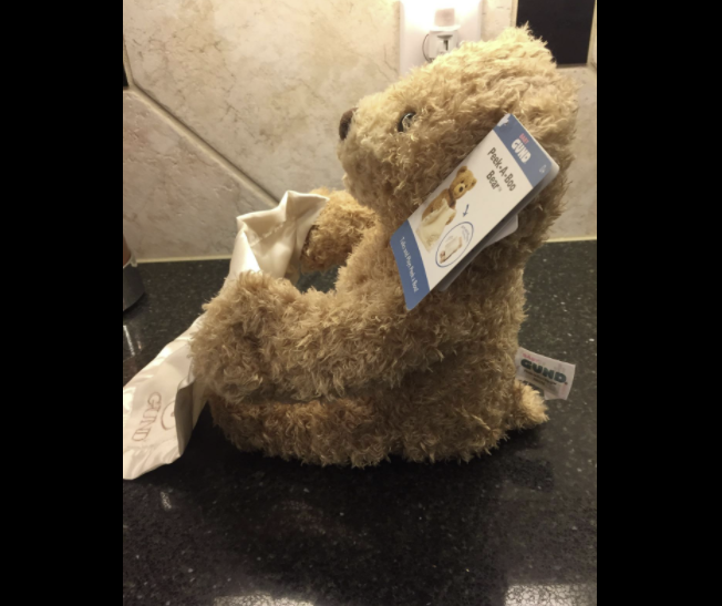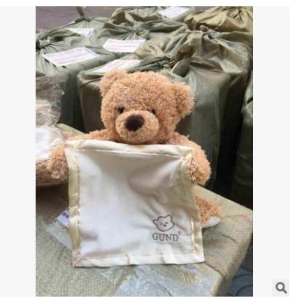 Like any animal, the Peek-a-Boo Bear Toy will need his bath time too. To clean, simply surface wash with water and soap. Do not machine-wash or -dry and be mindful of the battery chest inside the toy. Air dry after washing.