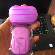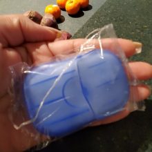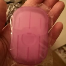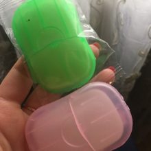 Our cases are made in five vivid colors: pink, orange, blue, purple, and yellow. Note that all soap sheets are the same scent and formula. Your order will contain a random assortment of the cases.