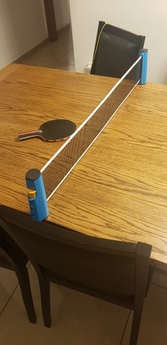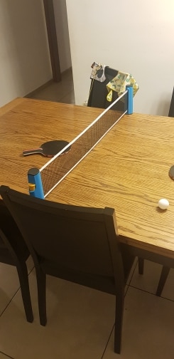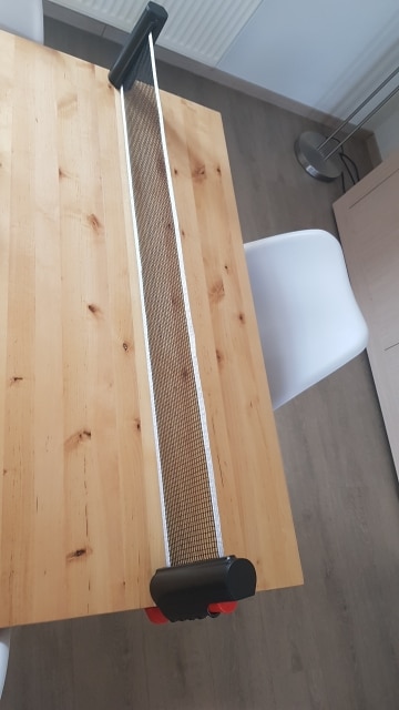 We all love this table tennis net, it was more expensive than some I have seen, but well worth the extra money. The net is of a good quality and all packs neatly away. I think we will have many years playing with this set as it really is well made. Children and adults had a brilliant time, we used a large pasting table as we played in the garden.