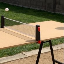 Ever bring a full-sized net to the beach or park? It’s a lot of work! And on top of the physical burden, it’s also a pain dealing with nets that get tangled and jumbled. Our retractable-net design makes opening and closing of this ping pong net a cinch — no tangles here! The net and handles in total weigh roughly one pound for easy transporting.