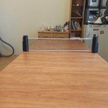 The retractable net is well built and fits nicely on our kitchen table. We live in a condo so we don’t have a lot of space for big game tables so this is a great compromise. Can also Put it on a picnic table at the park and had the best time with my 10 year old! We are excited to try other table surfaces. Easy set up, easy breakdown and all goes right back in its carrying case!