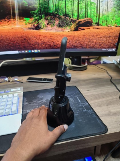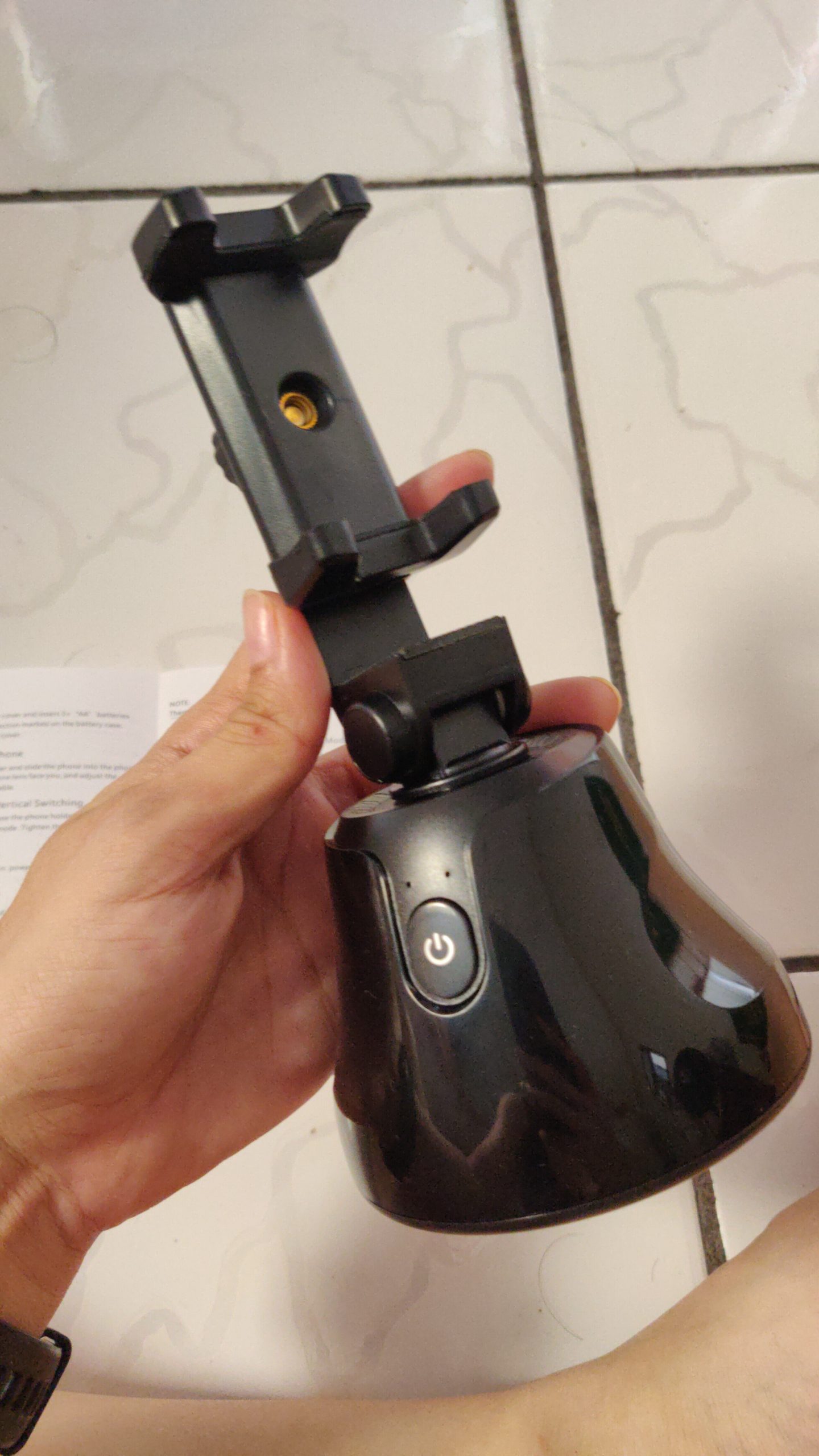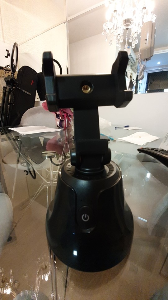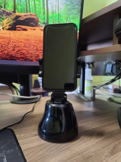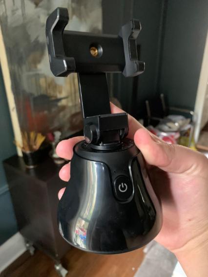 Pretty handy 360 holder, it follows you when you move around, nice for unboxing videos or tutorials. Feels a bit plasticky but apart of that is actually pretty solid, holds my iPhone pro max and also android phone without any issues. overall pretty satisfied!
