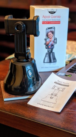 This is basically a selfie stick/tripod hybrid phone mount. This device has come in very handy for taking pictures and videos both indoors and outdoors, and has easily replaceable batteries. It holds your phone and allows for steady video to be taken. The device uses object tracking to follow, ensuring uninterrupted video is taken. It's easy to set up and works as expected.