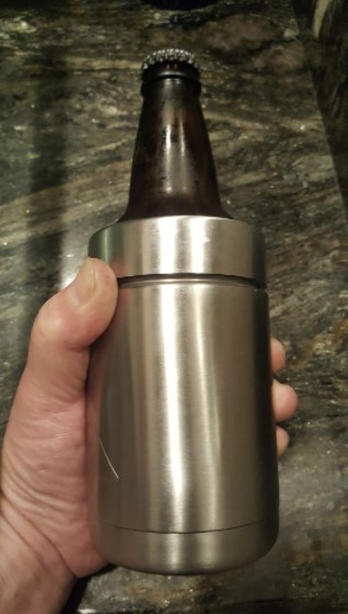 Keeps our beverages very cold. When sitting out in the HOT sun to sunbathe, it keeps a beer cold for over 20 minutes. I place the beer in the shade under my lawn chair though. Highly recommended to keep any beverage cold. Holds the beverage very snug.