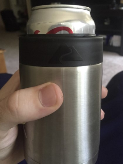 I really wanted a nice coozie for pounders... this one is "almost" perfect. Construction is sound, it keeps beverages cold, threaded cap looks like it will last. The only problem is that there is excess play laterally inside the coozie. I traced the opening and cut a piece of cardboard to fit. Problem solved with a little leg work.