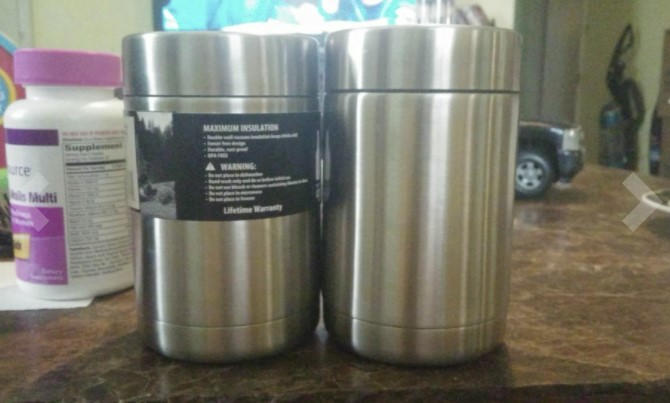 I bought this set for my daughter and her boyfriend. I added their names to it from another vendor. They hold bottles and cans. My daughters drink was left out on the table overnight, and it was still cold.