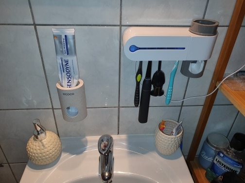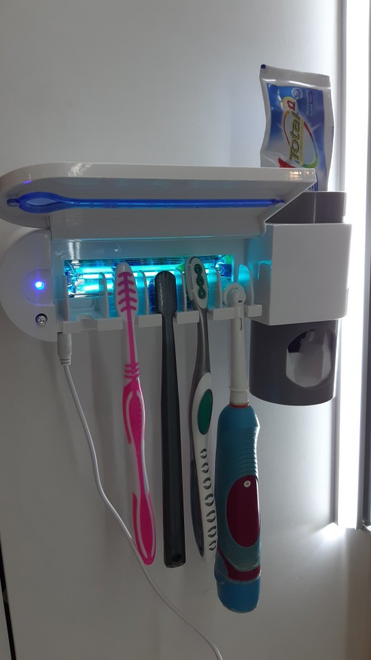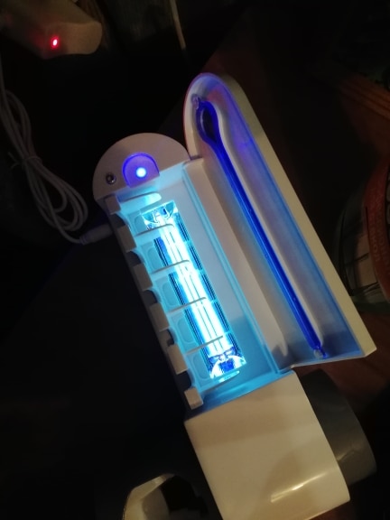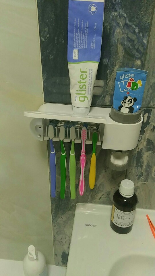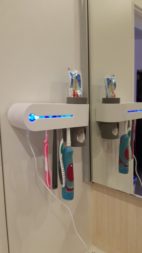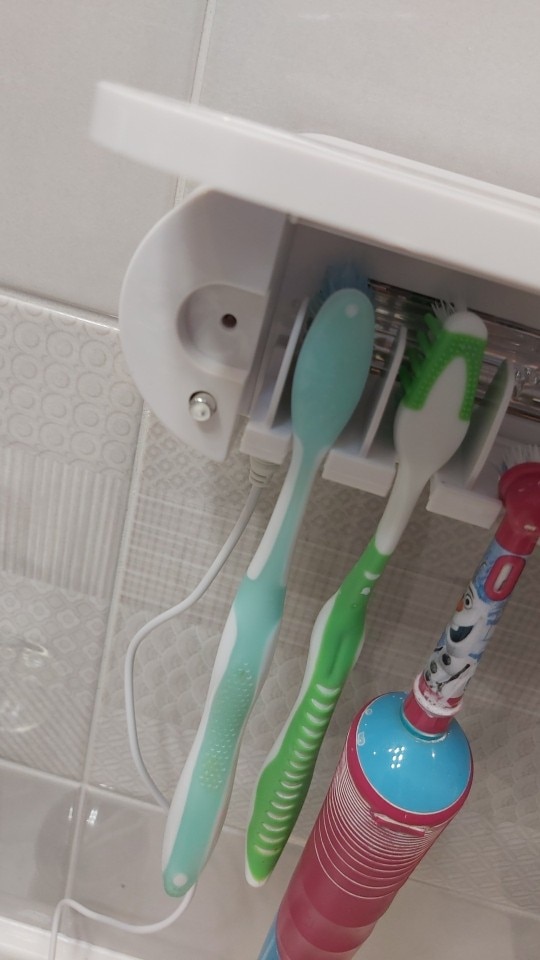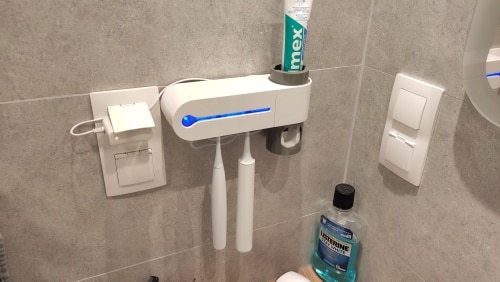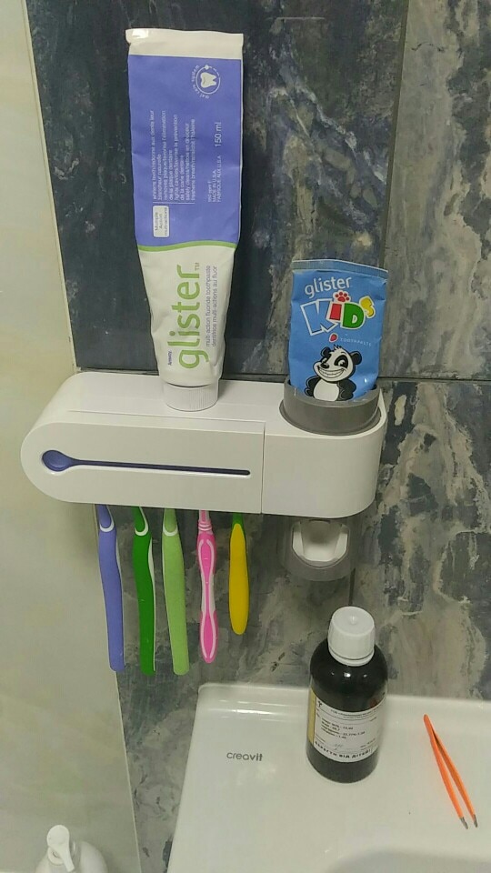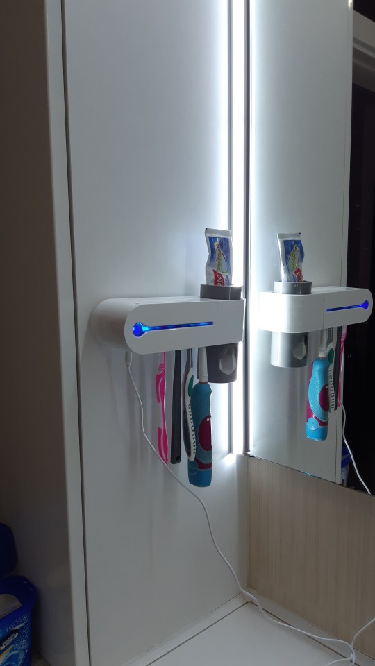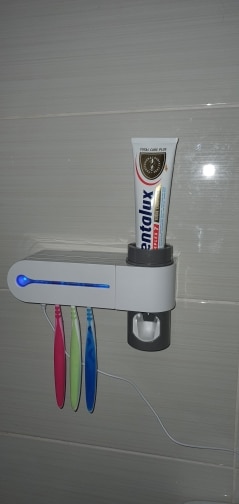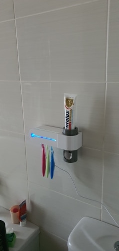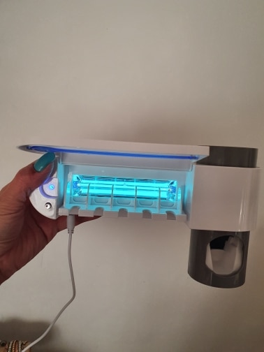 It is a magnificent device because it helps me keep the whole family's toothbrushes tidy and clean. It is very easy to install on the bathroom wall, it should only be plugged in to start working and disinfect and sterilize up to 4 toothbrushes at the same time using an ultraviolet light